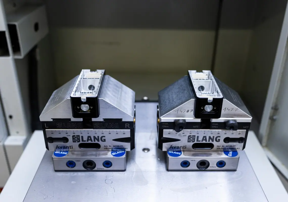 The Avanti vise with quick jaw exchange system is a flexible clamping solution for profile and pre-machined parts thanks to its soft, machinable top jaws. The patented interface between base and top jaws ensures the highly accurate positioning of the top jaws, which are clamped with just one screw and allow jaws to be changed in a matter of seconds.