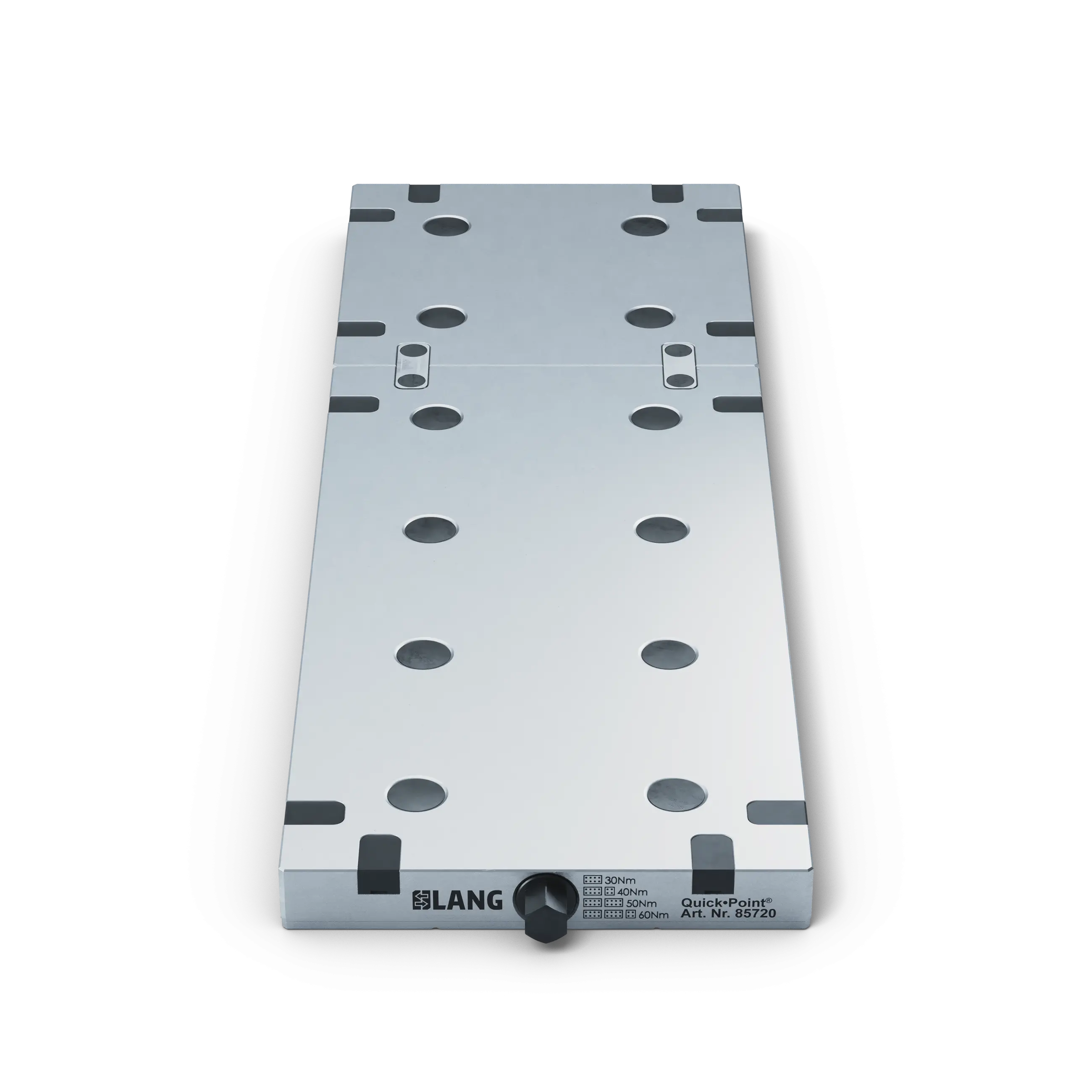 The connection set for the Quick•Point® modular plates is not only available in the conversion kit (Art. No. 85700), but also individually, for example, to connect modular plates with each other in the x-direction and to enable a cross-plate zero point grid. Due to the precisely fitting connection with the recesses of the zero point plate, module plates that are connected to each other no longer have to be aligned with one another.