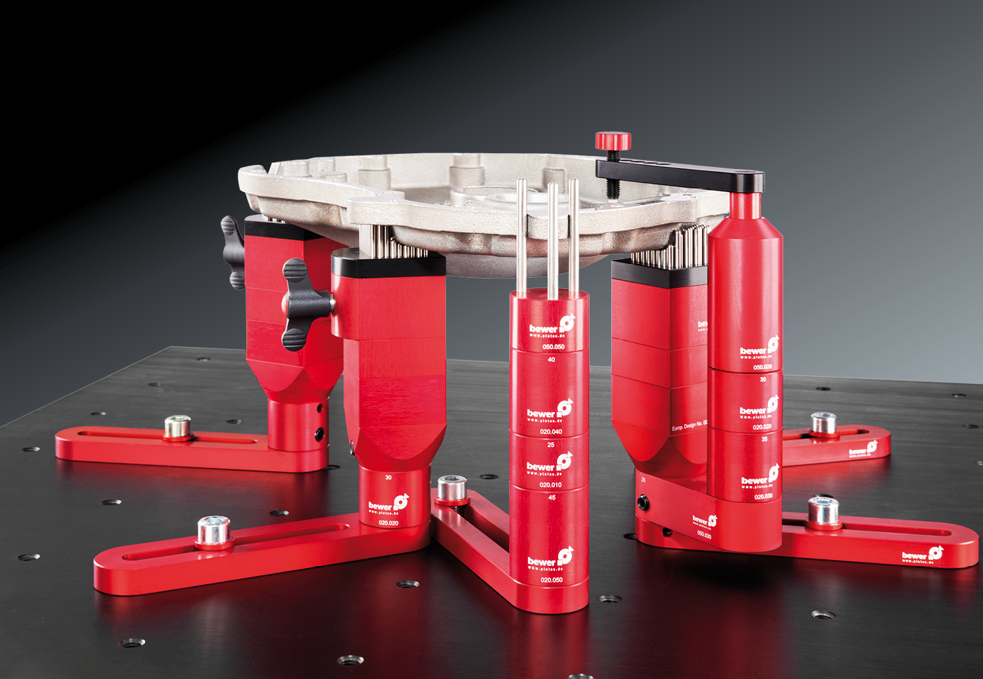 Contains a hold- down pin to secure the parts in place for accurate measuring