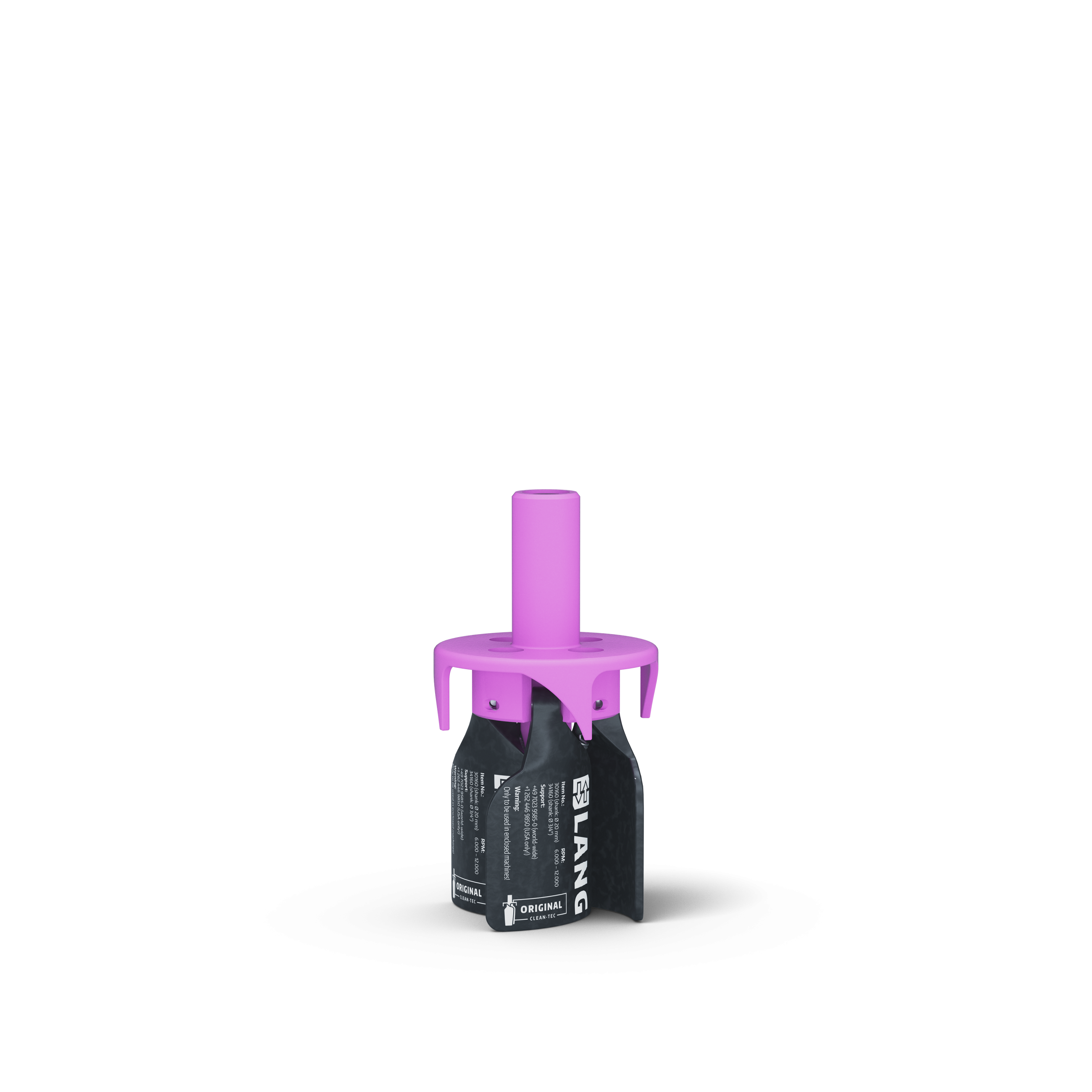 The smallest version of the Clean•Tec chip fan, whose body can be clamped in any standard Ø 20 mm tool holder, is particularly suitable for targeted cleaning tasks such as blowing out pocket holes and is more commonly used in smaller machines. By controlling the speed of the machine spindle, it opens and closes its blades and efficiently frees workpieces and fixtures from chips and cooling.