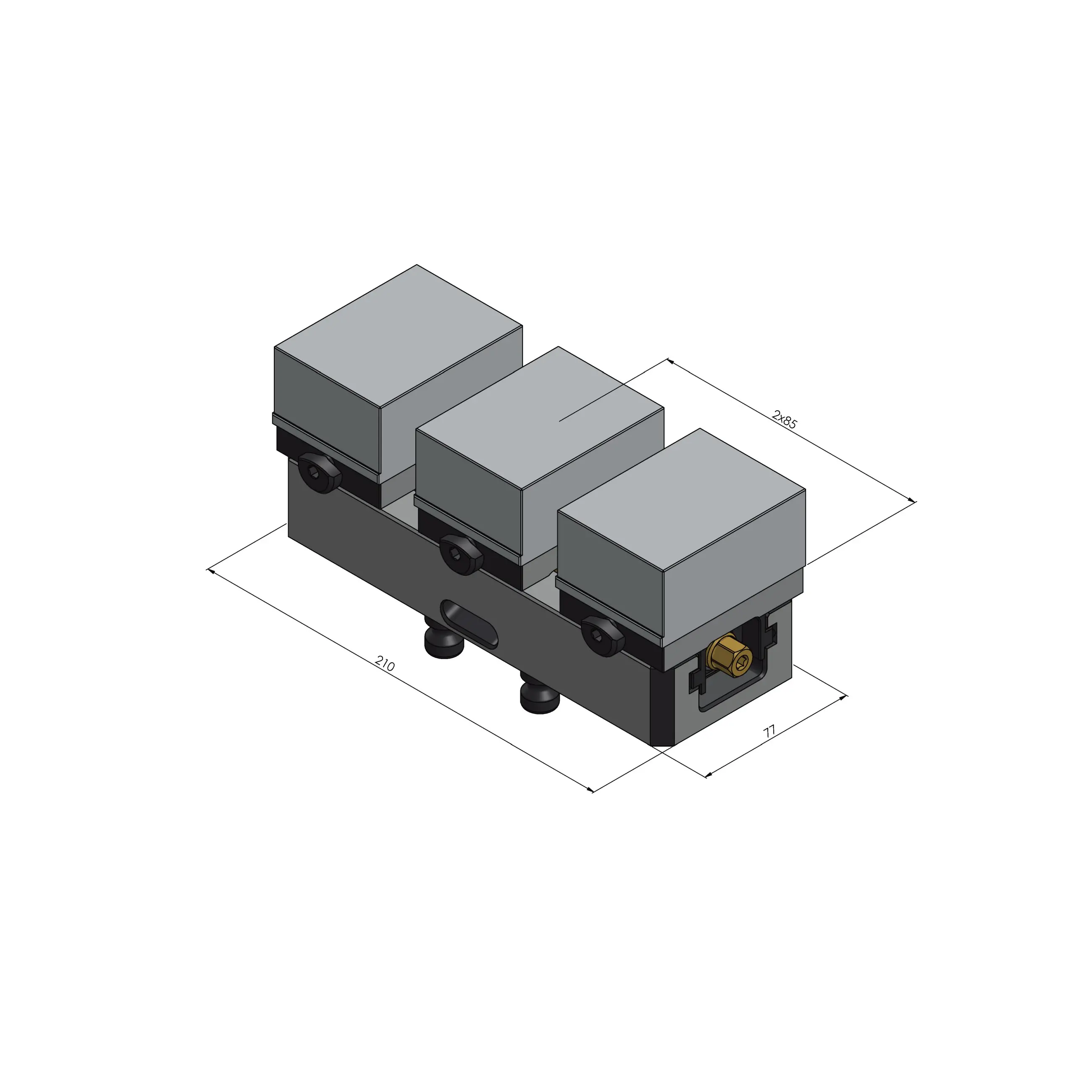 If required, the Avanti vise can be converted into a multiple clamp. During the conversion, which can be carried out in a few moments, only the set of spindle + center piece from the contour clamp has to be replaced by the center base jaw + spindle. For (multiple) workpiece clamping, the same top jaw as for the base jaws is mounted on the center base jaw.