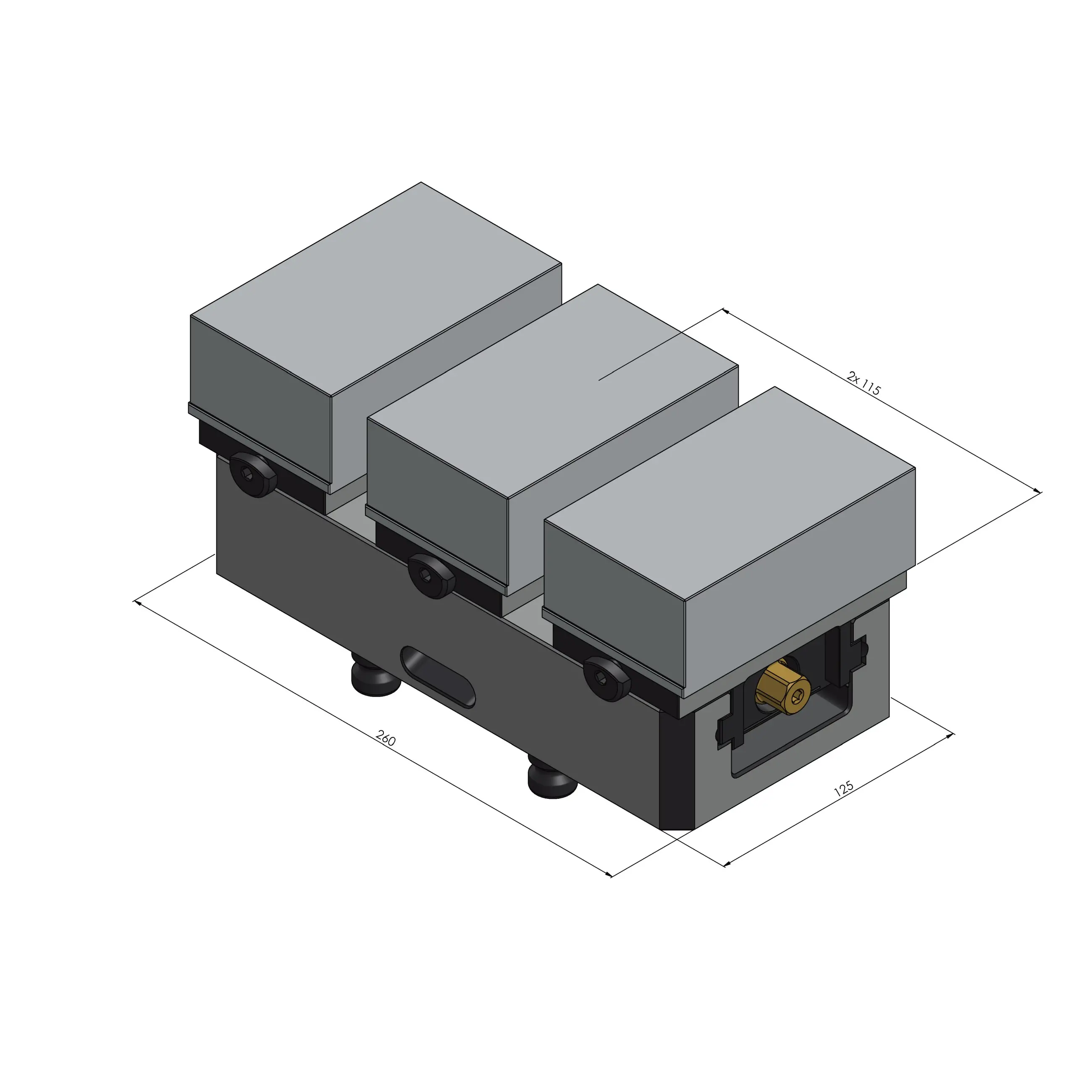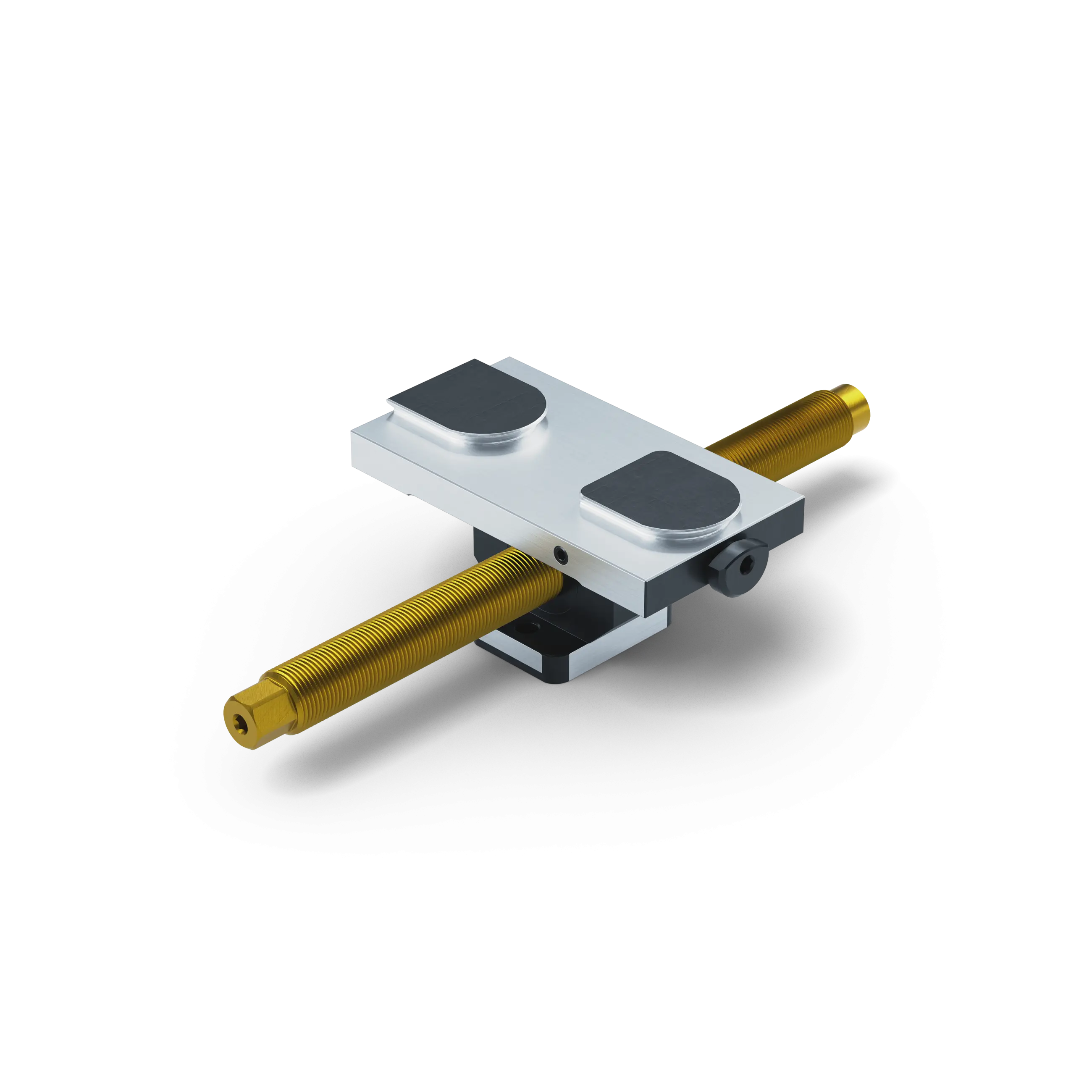 If required, the Avanti vise can be converted into a multiple clamp. During the conversion, which can be carried out in a few moments, only the set of spindle + center piece from the contour clamp has to be replaced by the center base jaw + spindle. For (multiple) workpiece clamping, the same top jaw as for the base jaws is mounted on the center base jaw.