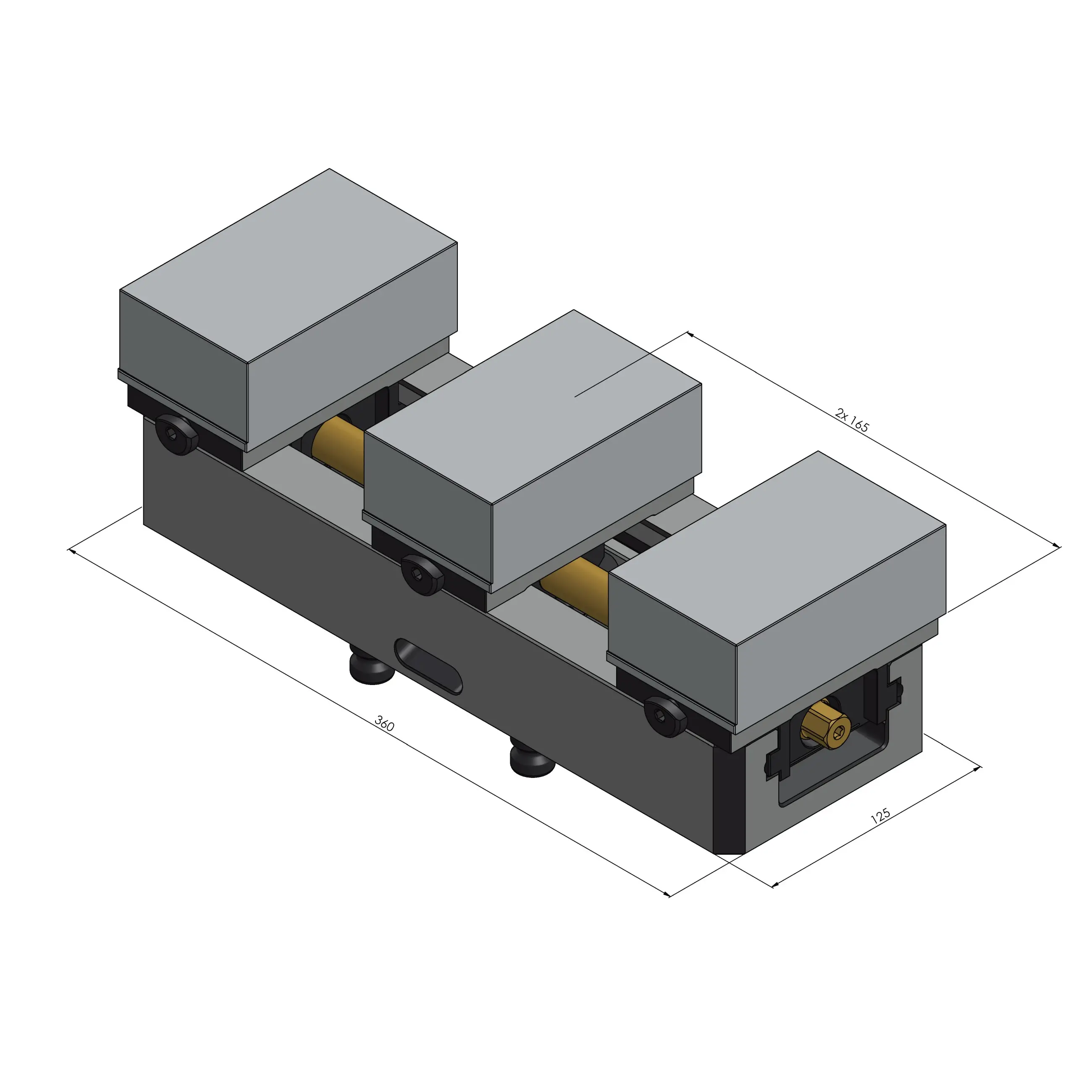 If required, the Avanti vise can be converted into a multiple clamp. During the conversion, which can be carried out in a few moments, only the set of spindle + center piece from the contour clamp has to be replaced by the center base jaw + spindle. For (multiple) workpiece clamping, the same top jaw as for the base jaws is mounted on the center base jaw.