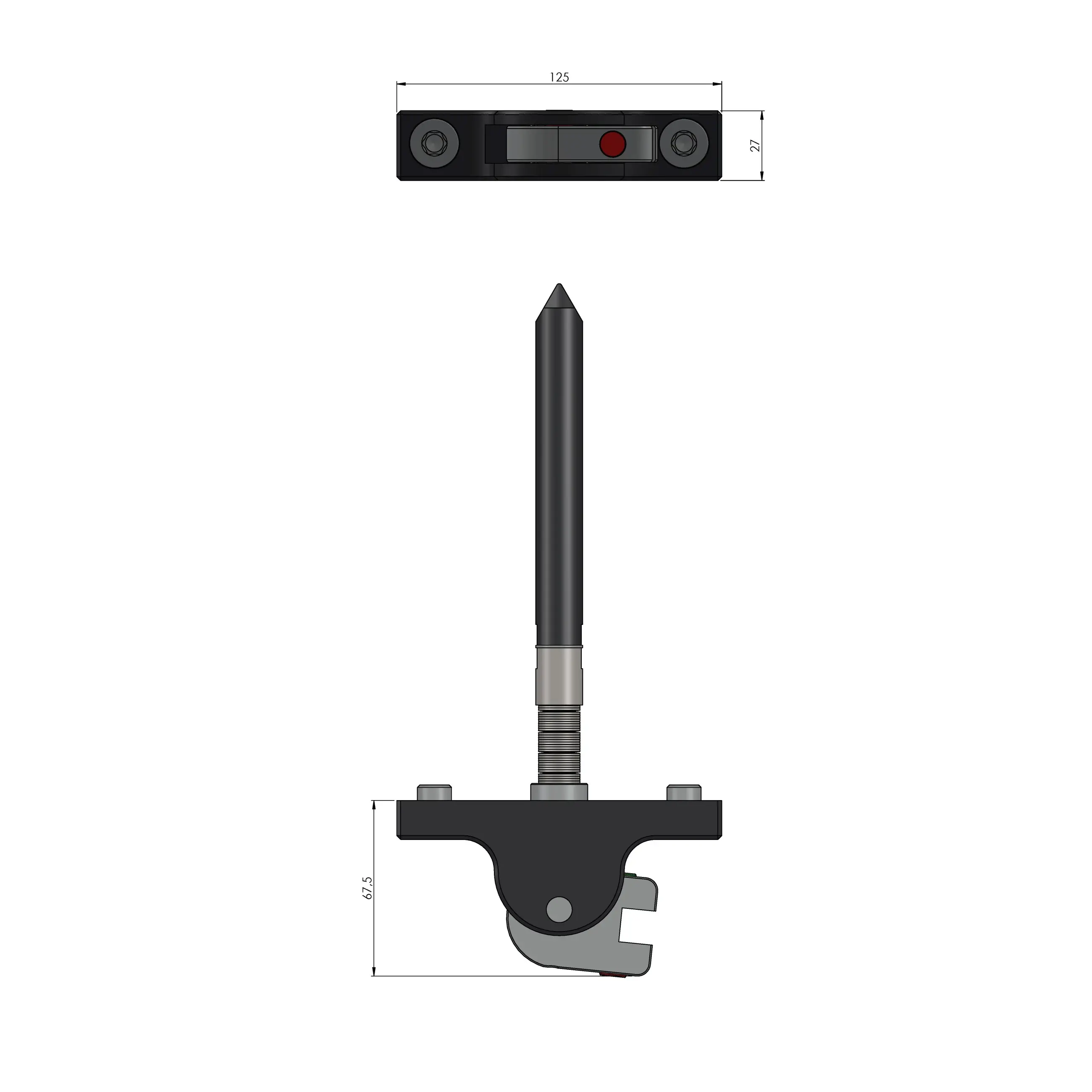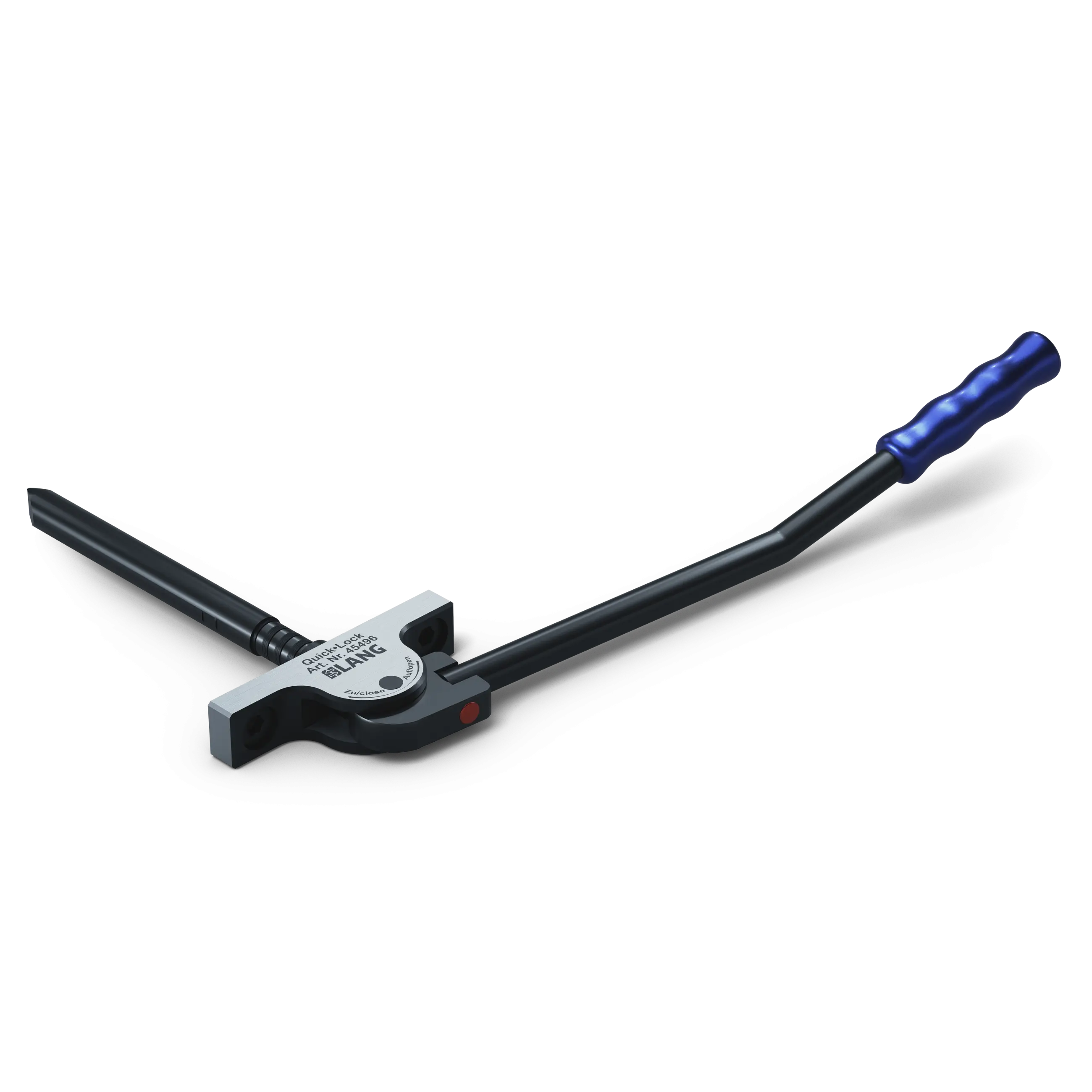 As an alternative to the actuation screw, all round 4-fold grid plates 96 can be conveniently operated with the Quick•Lock fastener. With a 180° closing movement of the Quick•Lock lever, the clamping effect of a clamping device in the zero-point clamping system is established and released, with identical clamping and holding forces as when actuated via the screw.
