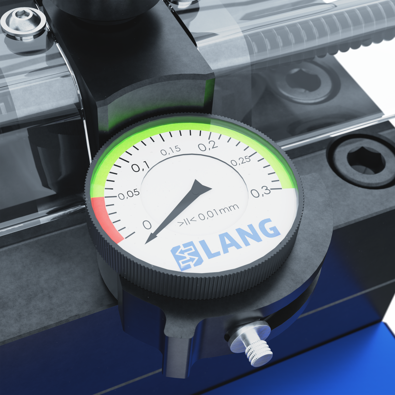 The new accessories for Makro•Grip® stamping units - centering device and depth gauge - are also available as a set. Using this set makes operation of the stamping unit even easier and more effective. The centering device speeds up the exact centering of workpiece blanks up to 205 mm wide, since no prior measurement is required. With the stamping depth gauge / measuring device, the correct stamping pressure or stamping depth can be read off on a dial gauge.