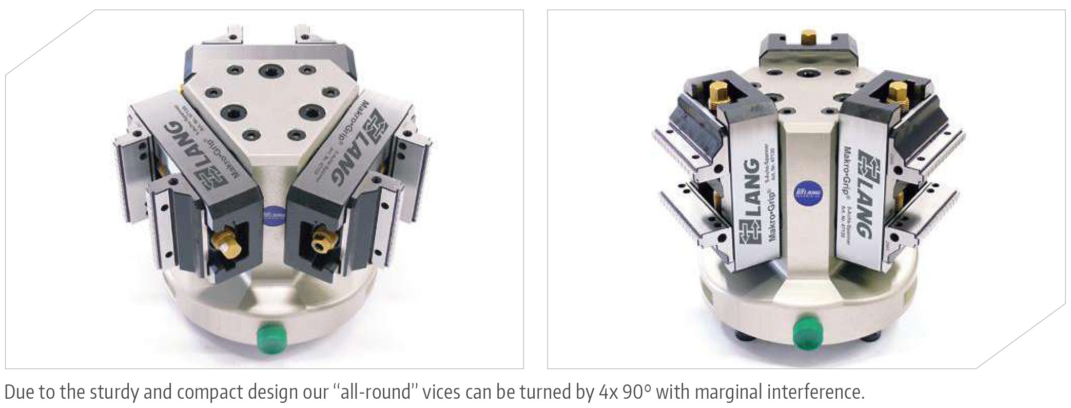 Due to the sturdy and compact design our “all-round” vices can be turned by 4x 90° with marginal interference.