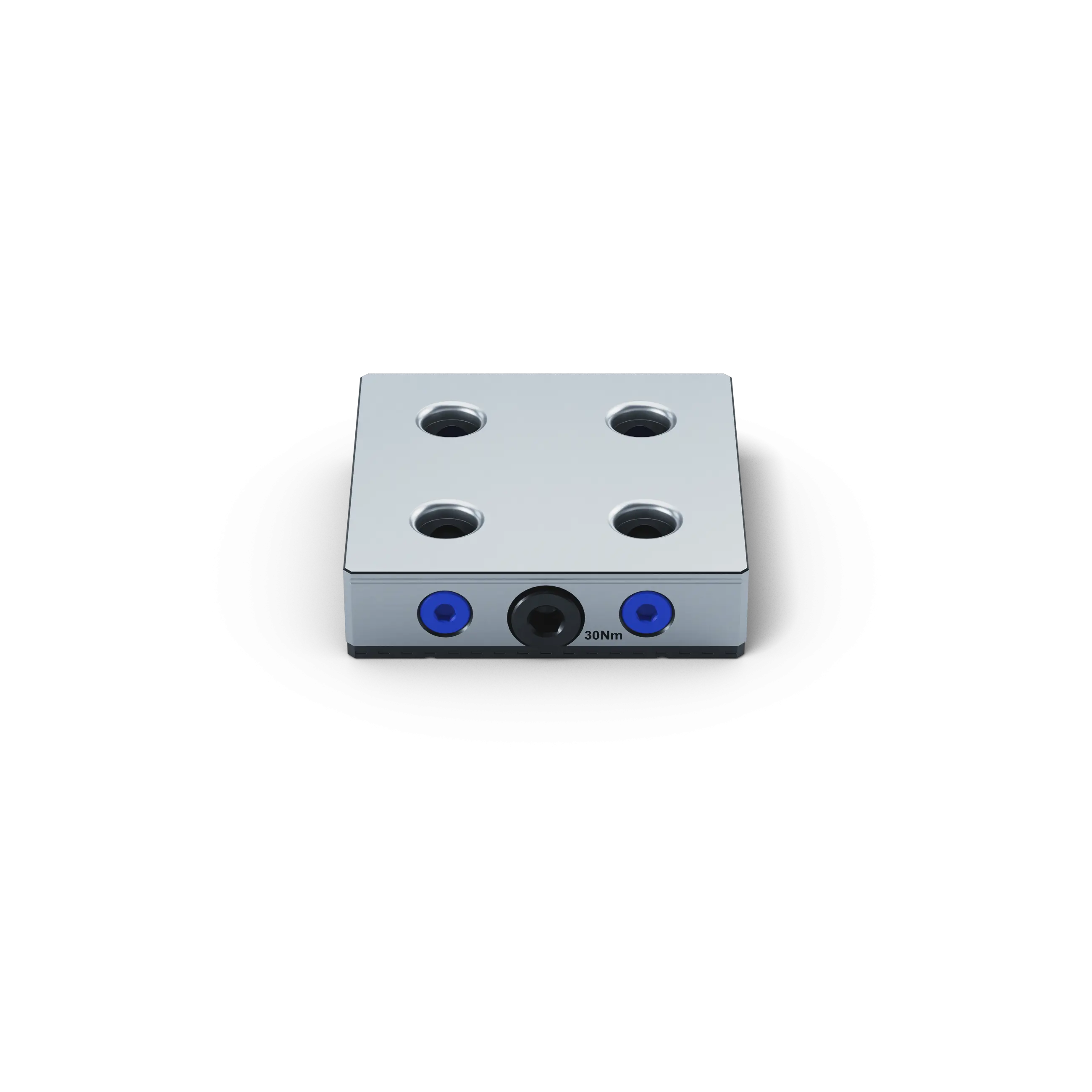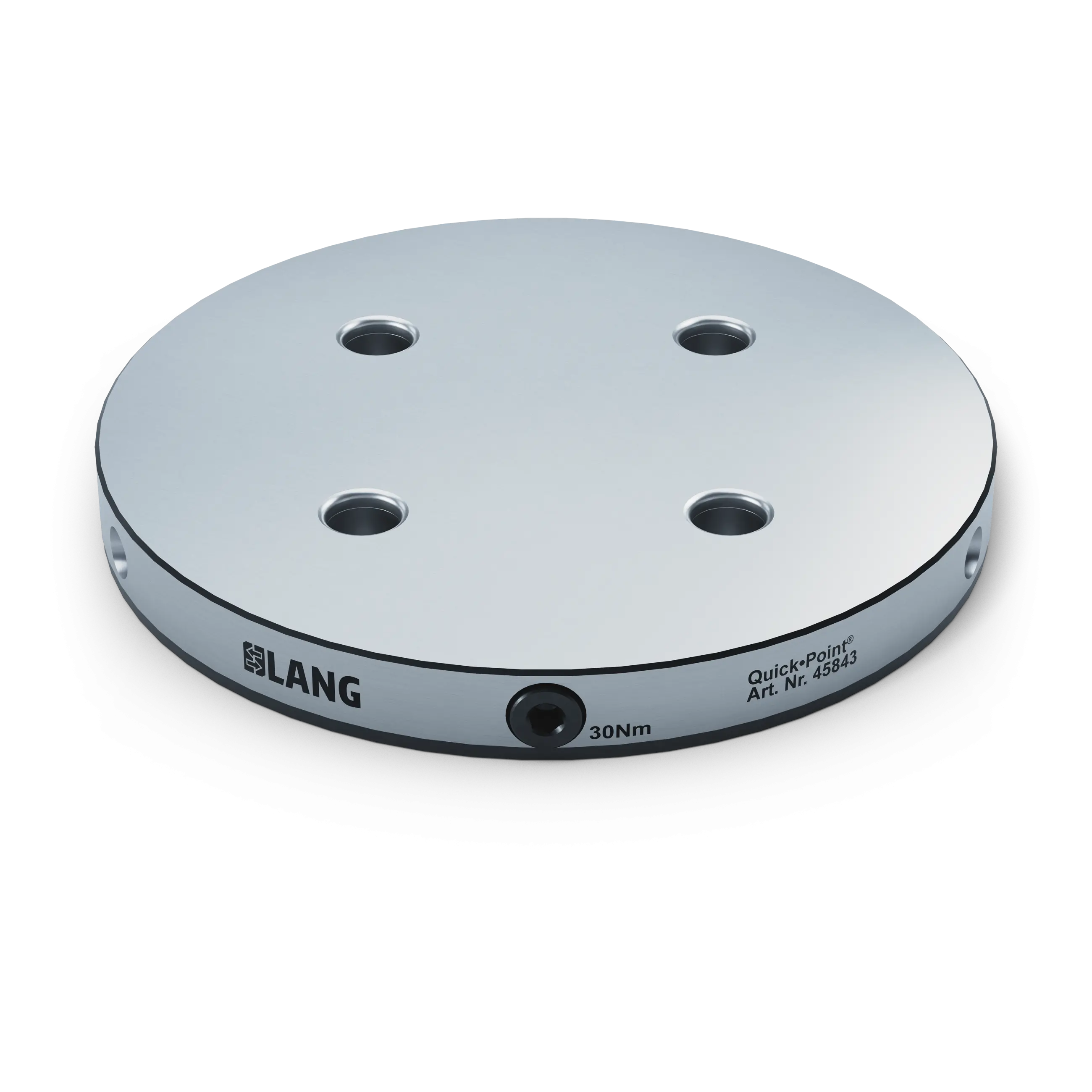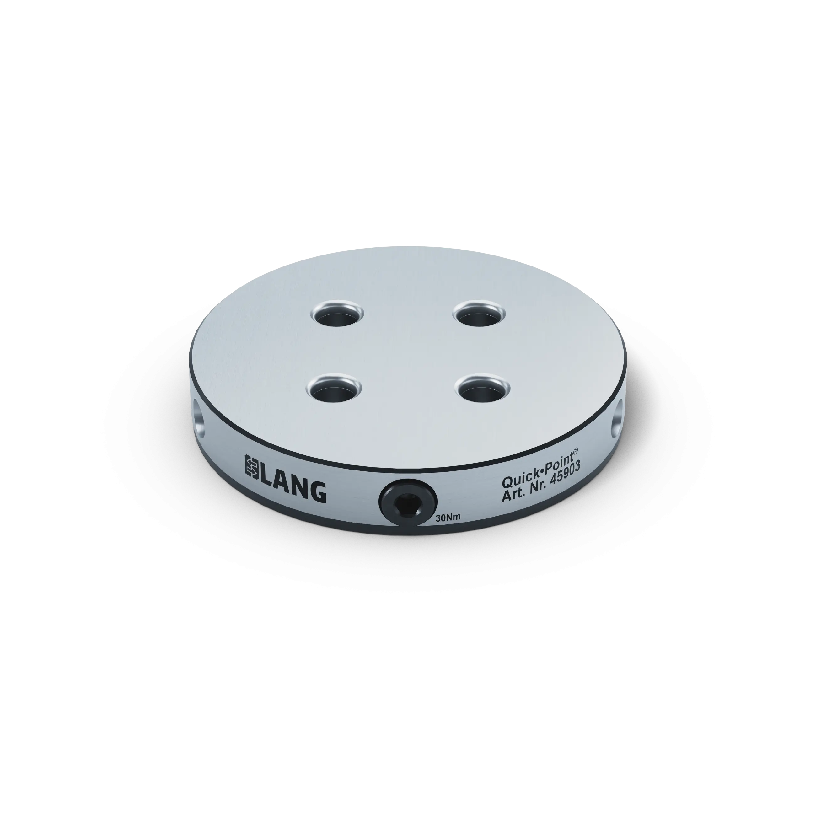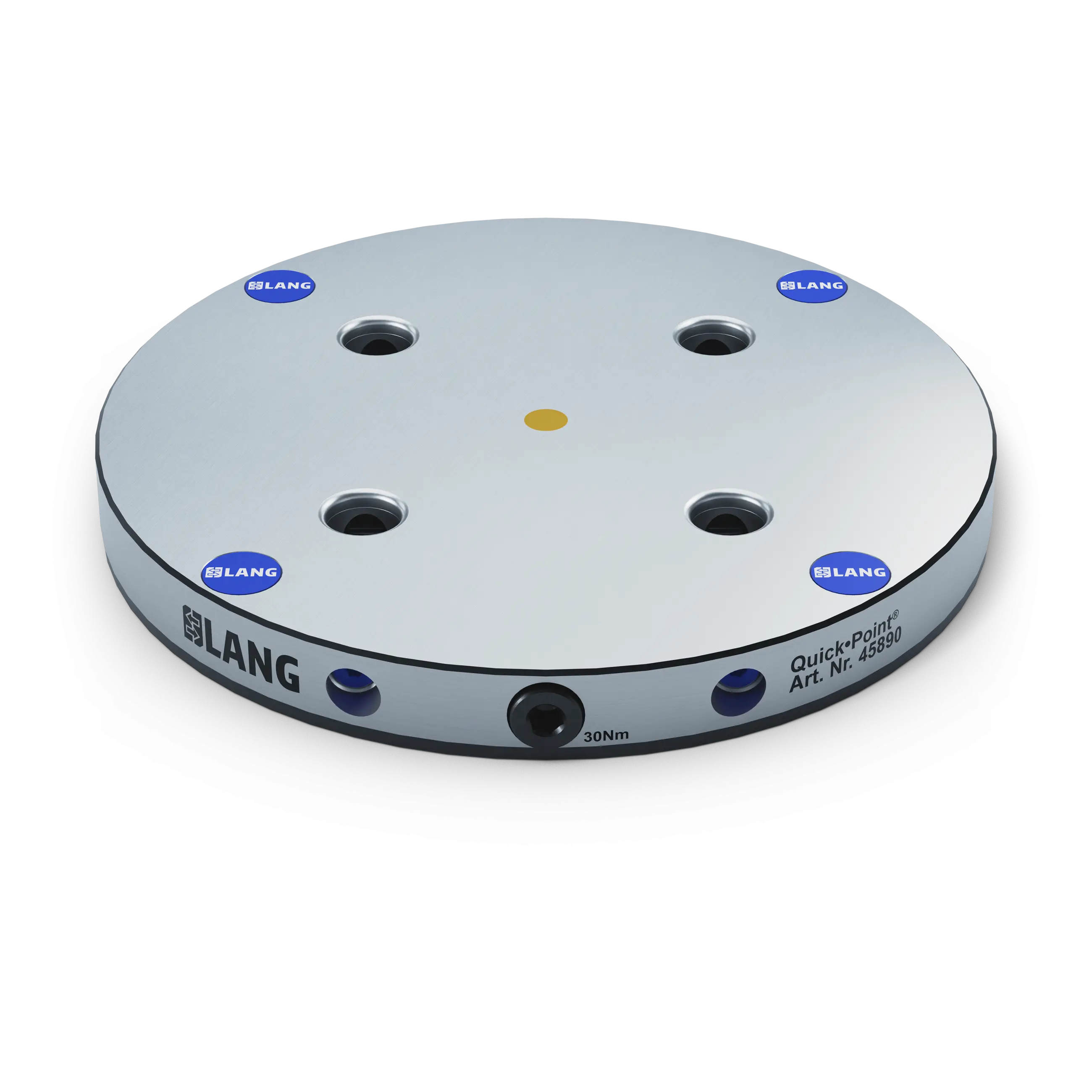 This version of the combo round plates is available as standard without predefined mounting holes. Thanks to its 196 mm diameter, it offers versatile possibilities for adding a mounting hole pattern in order to fix it on machine tables or on fourth axes.