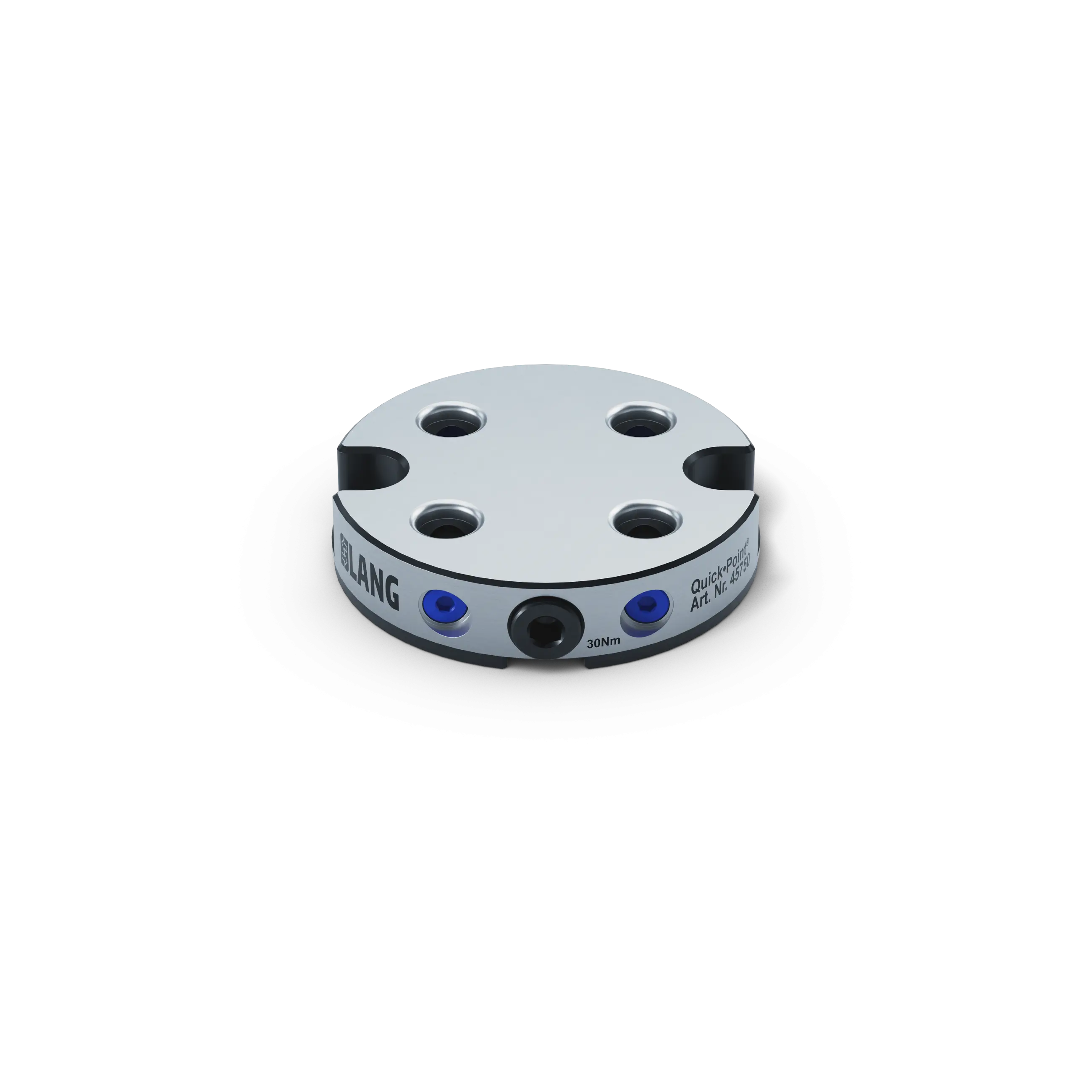 The Quick•Point® Zero-Point Clamping System is characterized by a particularly wide range of variations and provides a solution for any machine tool. Whether round, rectangular or square in shape, for single or multiple clamping, it can be universally used in vertical and horizontal machining centers, on 3- and 5-axis tables and 4th axis rotary or trunnion systems.