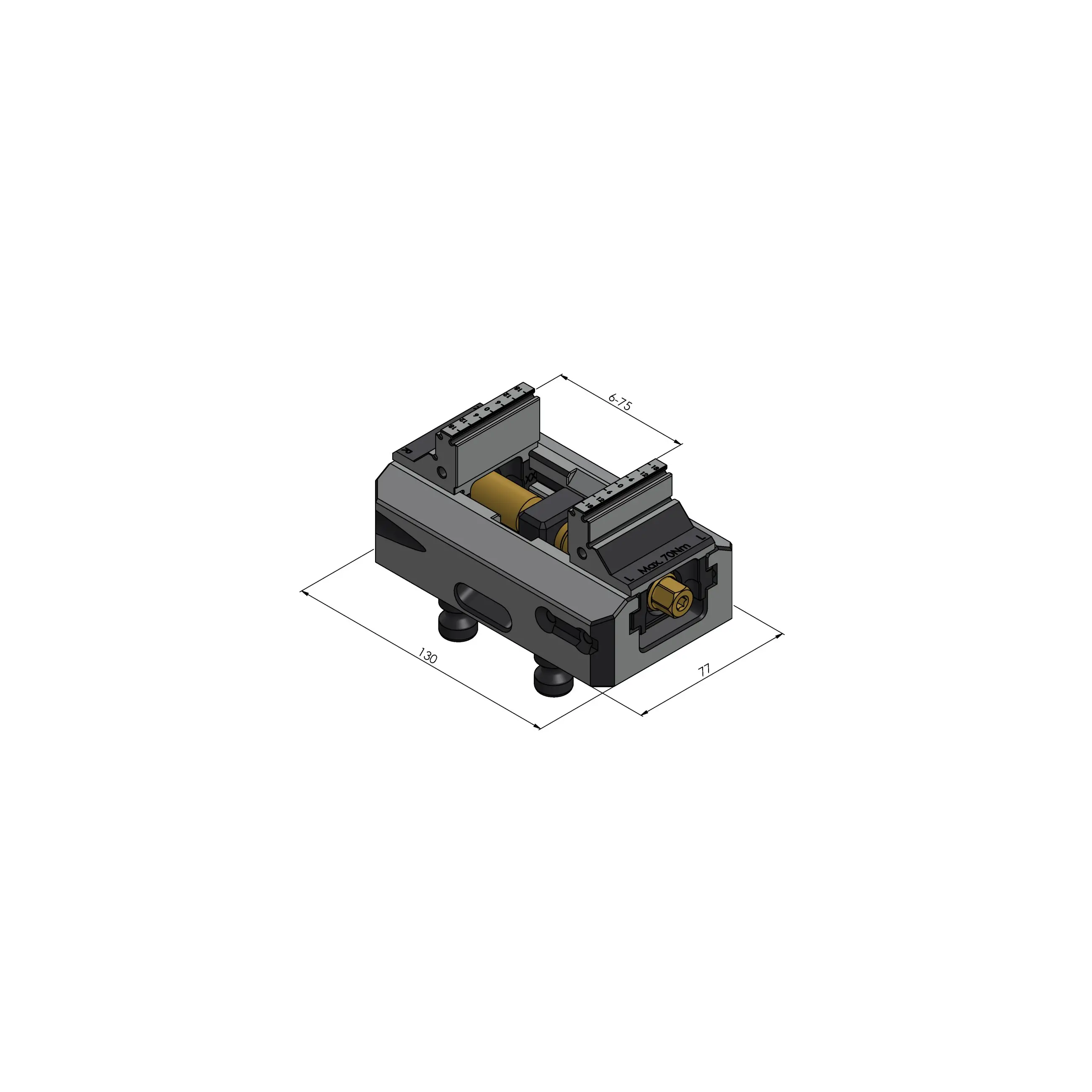 The 5-Axis Vise with base body length 130 mm and jaw width 46 mm is extremely versatile. It is very popular in both manual and automated CNC machining. Due to the form-fit clamping principle, only low clamping pressures are required. Workpieces can therefore be clamped almost without deformation. There is no wear on the clamping device itself - even when high-tensile materials are clamped and machined. The constant clamping quality ensures high reliability in the machining process, which is particularly important in batch production with the RoboTrex automation system.