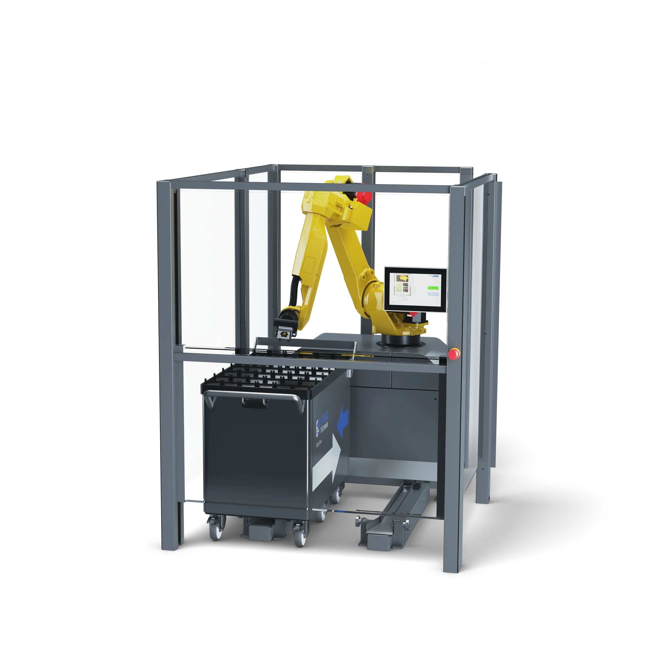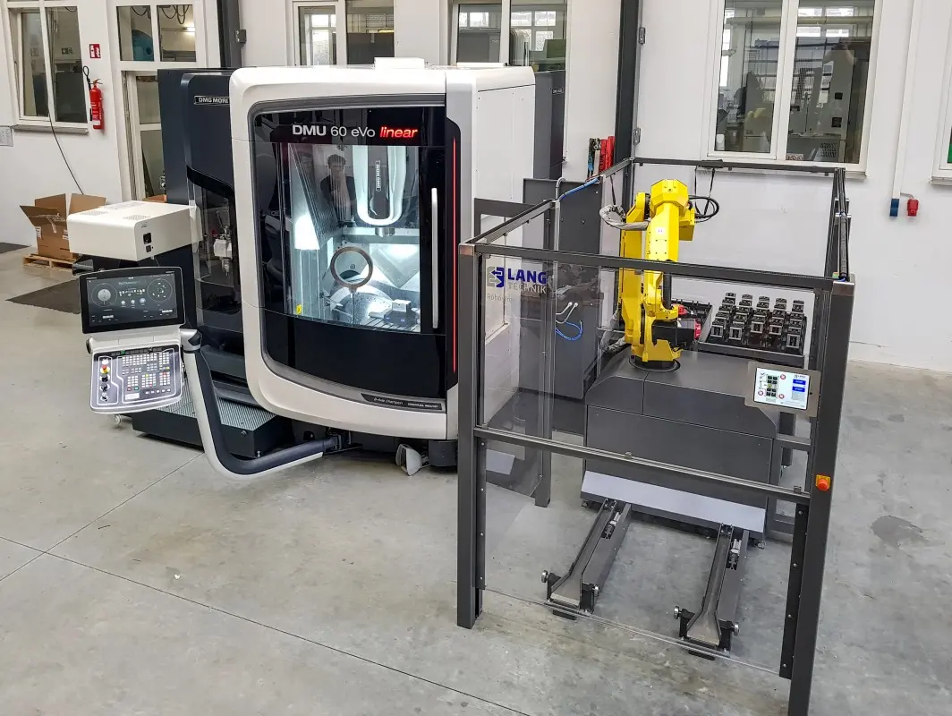 The RoboTrex 52 automation system, with a maximum storage capacity of 168 vises and workpiece weights of up to 12 kg, covers every need from single-part production to larger series. It is flexible, easy-to-use and offers an excellent cost-benefit ratio. It uses flexible automation trolleys as a storage for the vises, which can be pre-equipped off-line and enable rapid re-equipping of the system without machine downtime. Thanks to the intuitive operation and the pre-set system, no robotics knowledge is necessary, which keeps the training effort to a minimum and requires no specialised personnel.